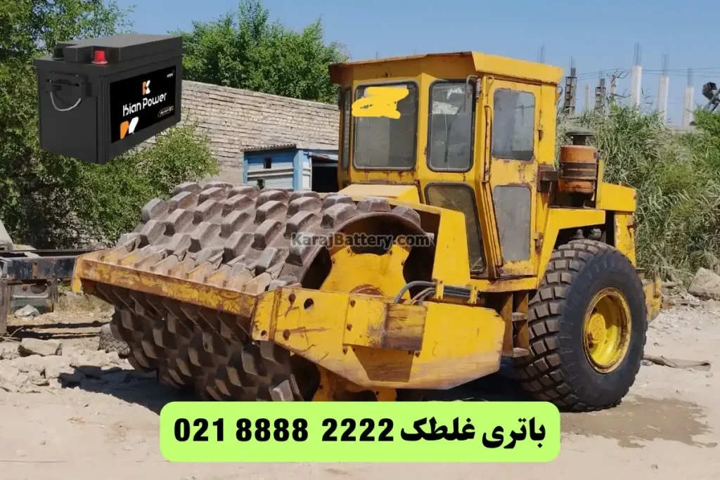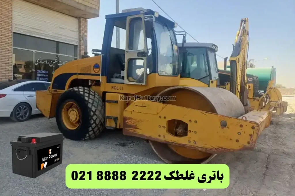برندهایی مانند هیتاچی (Hitachi)، کوماتسو (Komatsu) و ولوو (Volvo) در پروژههای بزرگ راهسازی بهکار میروند. این دستگاهها به دلیل قدرت بالای موتور و سیستم هیدرولیک قوی، معمولا به باتریهای ۲۴ ولتی با ظرفیت بالا (۱۸۰ تا ۲۰۰ آمپر) نیاز دارند تا در شرایط سخت نیز استارت مطمئنی داشته باشند. - غلطکهای ساختمانی و سبک