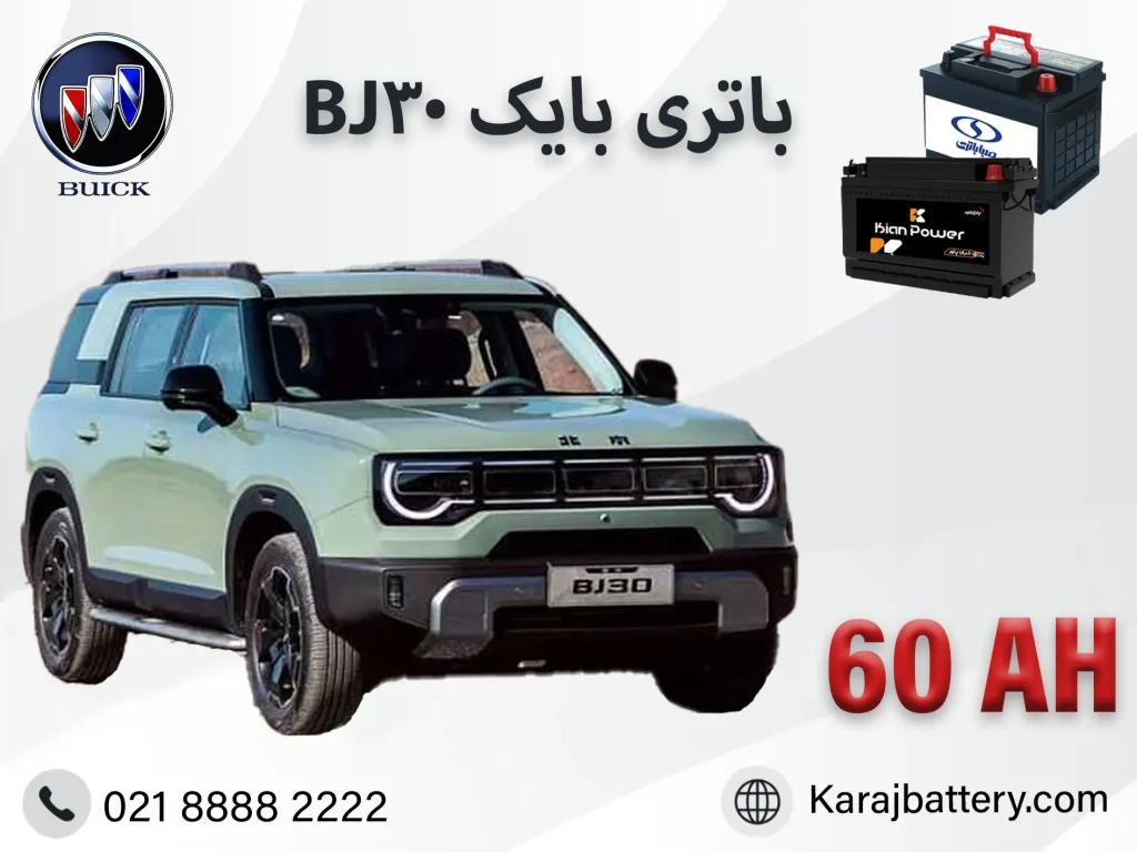 بایک BJ30 معمولاً با باتری‌هایی با ظرفیت ۶۰ آمپر ساعت طراحی شده است، اما مهم‌ترین پارامتر در نصب، قالب فیزیکی است.