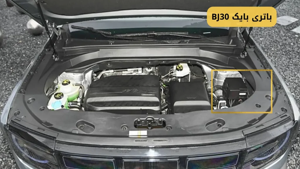 باتری این خودرو در قسمت محفظه موتور قرار دارد. در تصویر زیر میتوانید محل نصب باتری این خودرو را مشاهده نمایید: