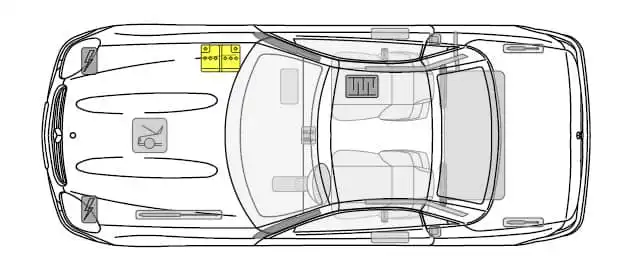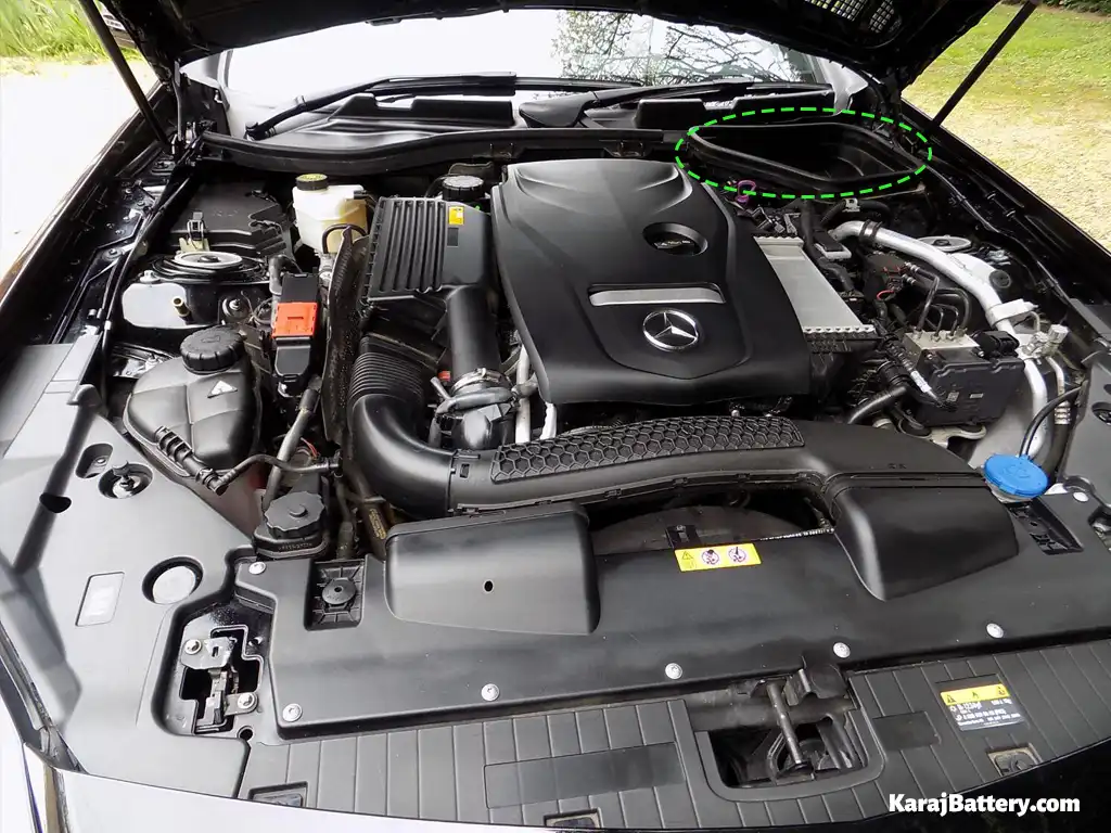 باتری در مدل‌های مختلف بنز SLC در محفظه موتور قرار گرفته است. در تصاویر زیر محل جانمایی آن را مشاهده می‌کنید.