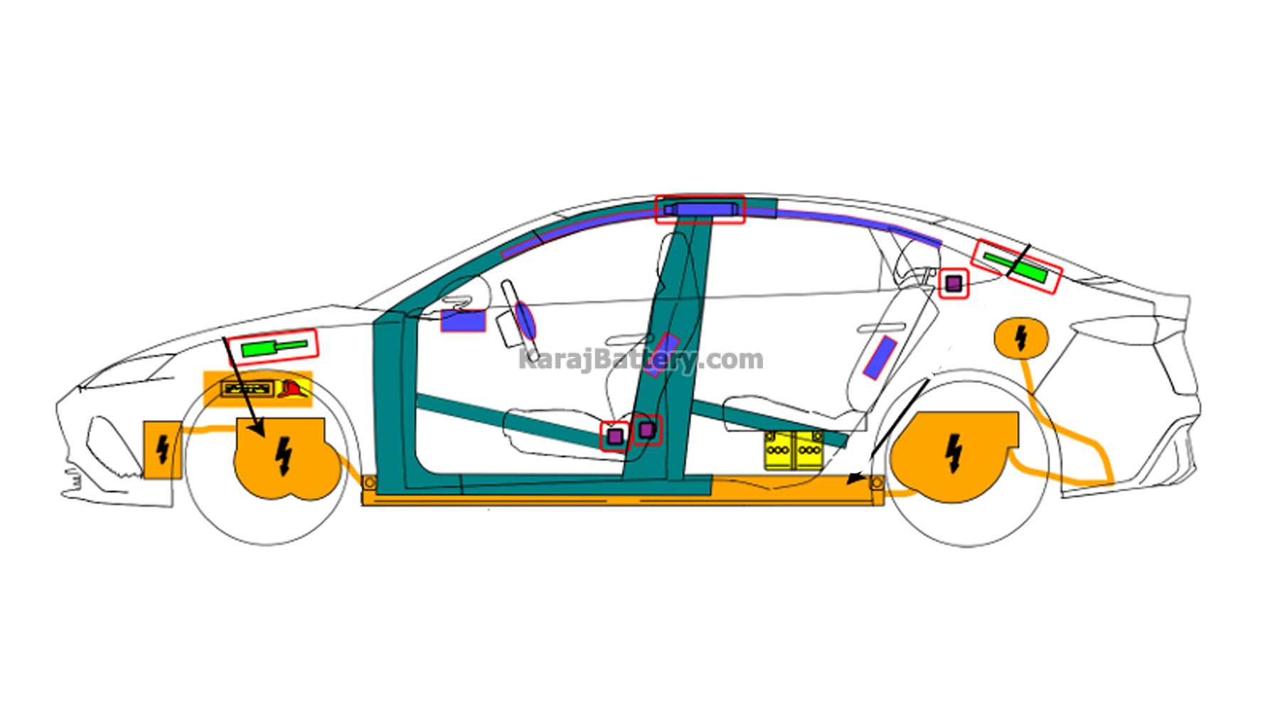 - محل باتری: داخل کابین زیر صندلی سرنشین عقب سمت راننده